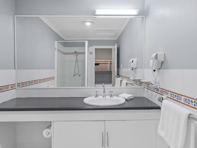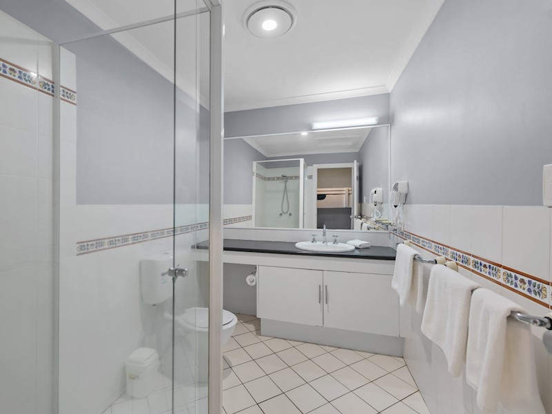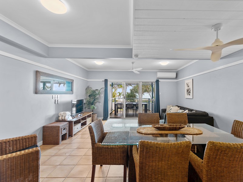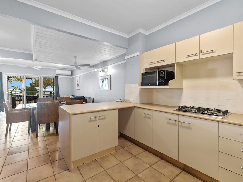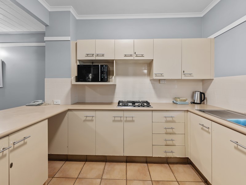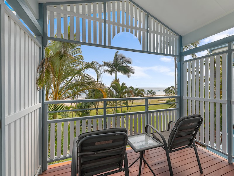 Designed for comfort, the villa is fully air-conditioned with reverse-cycle climate control and ceiling fans throughout. The open-plan living and dining area flows onto a private balcony, where you can relax and enjoy the sea breeze. Inside, you’ll find a TV in the lounge and a direct-dial ISD/STD telephone for your convenience. The full kitchen is equipped with everything you need to self-cater, including a full-size fridge, cooktop, convection/microwave oven, plus a washing machine and dryer. Please note this villa does not include a dishwasher.