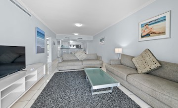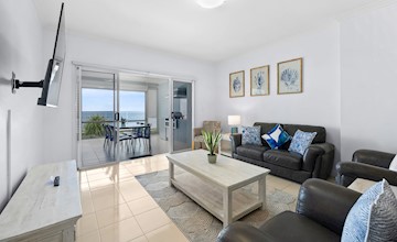 This stunning 2 bedroom holiday apartment is located on the top level of the Deep Blue complex. Accommodating up to 6 guests who can all enjoy the extraordinary views across Moreton Bay.
