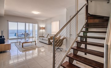 Spanning two floors with an elegant internal staircase, this beautiful 3 bedroom apartment elegantly separates the living and sleeping areas, and gives you two levels of views for up to 8 guests