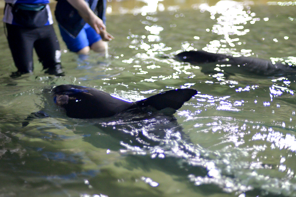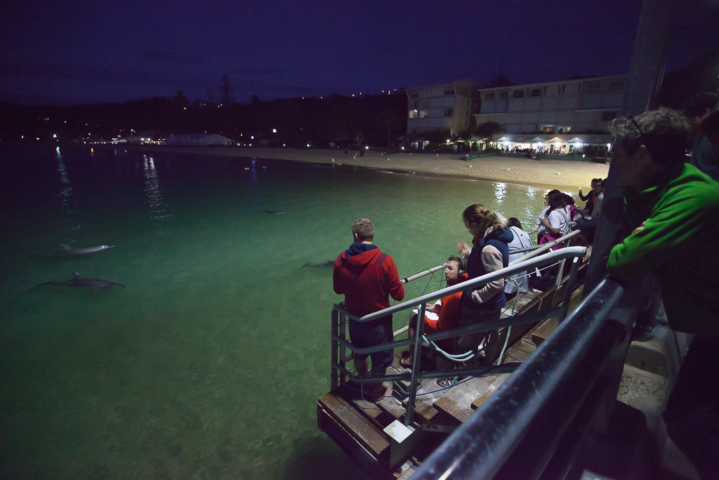 Since the establishment of the wild dolphin feeding programme at Tangalooma Island Resort, Marine Education and Conservation Centre staff have documented the behaviours and interactions of wild bottlenose dolphins that visit the shores of the resort each evening. Over the years, the wild dolphin feeding experience has become a huge drawcard for holidaymakers visiting from all over the world, as up to 11 wild bottlenose dolphins greet Tangalooma Dolphin Care Team staff and resort guests off the Tangalooma beach.