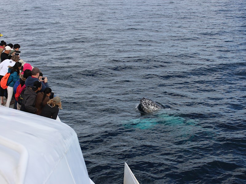 Bring binoculars. Whales often come close to the boat, but other times you can only see them in the distance. Plus it can be more fun, and feel like you are on a safari when you are trying to spot whales through binoculars!